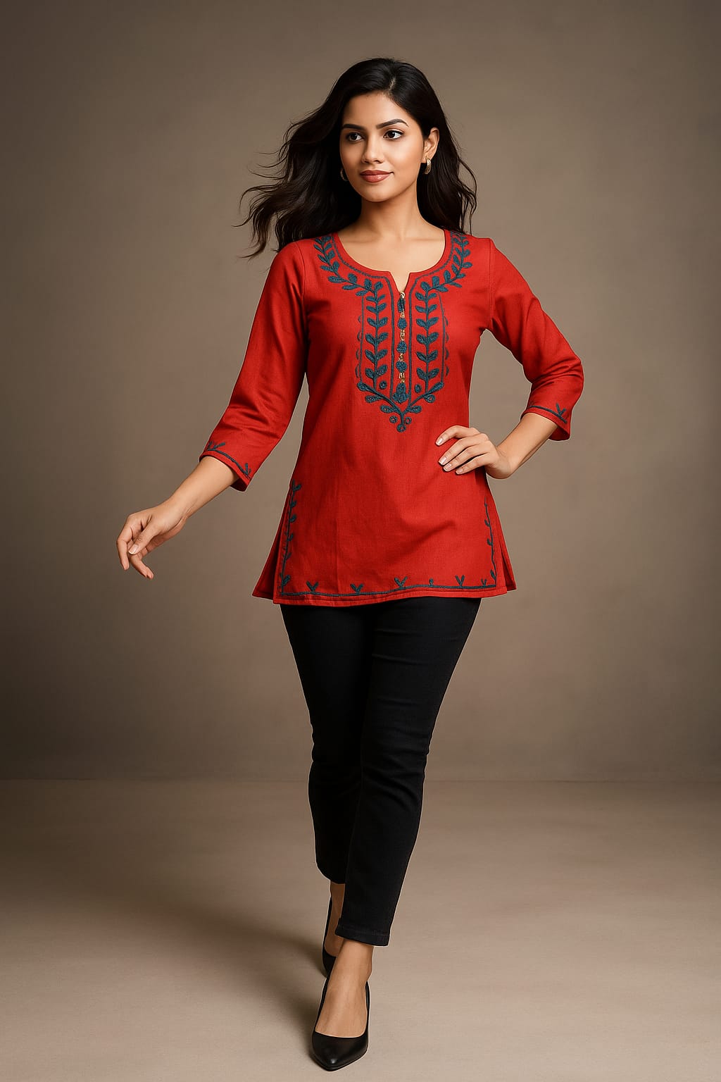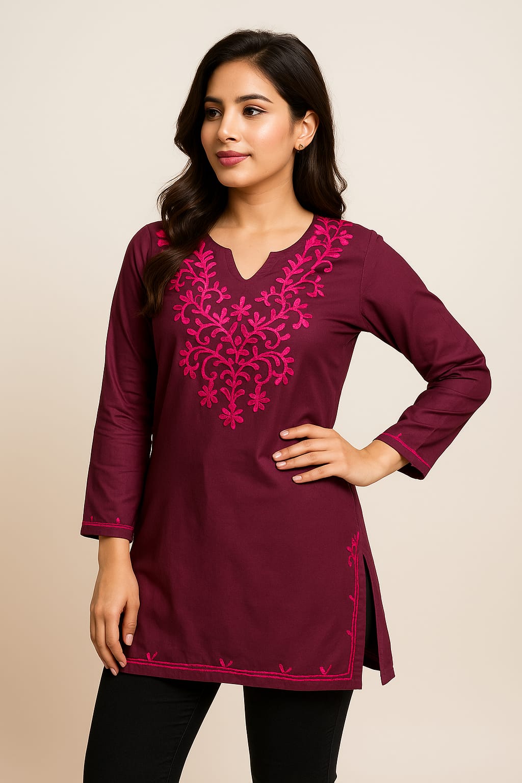 Stylish and chic! I wore it with jeans and it looked super trendy. Love the embroidery work.