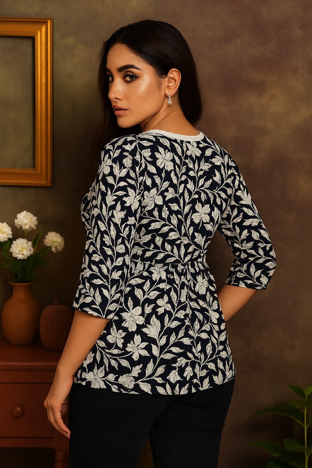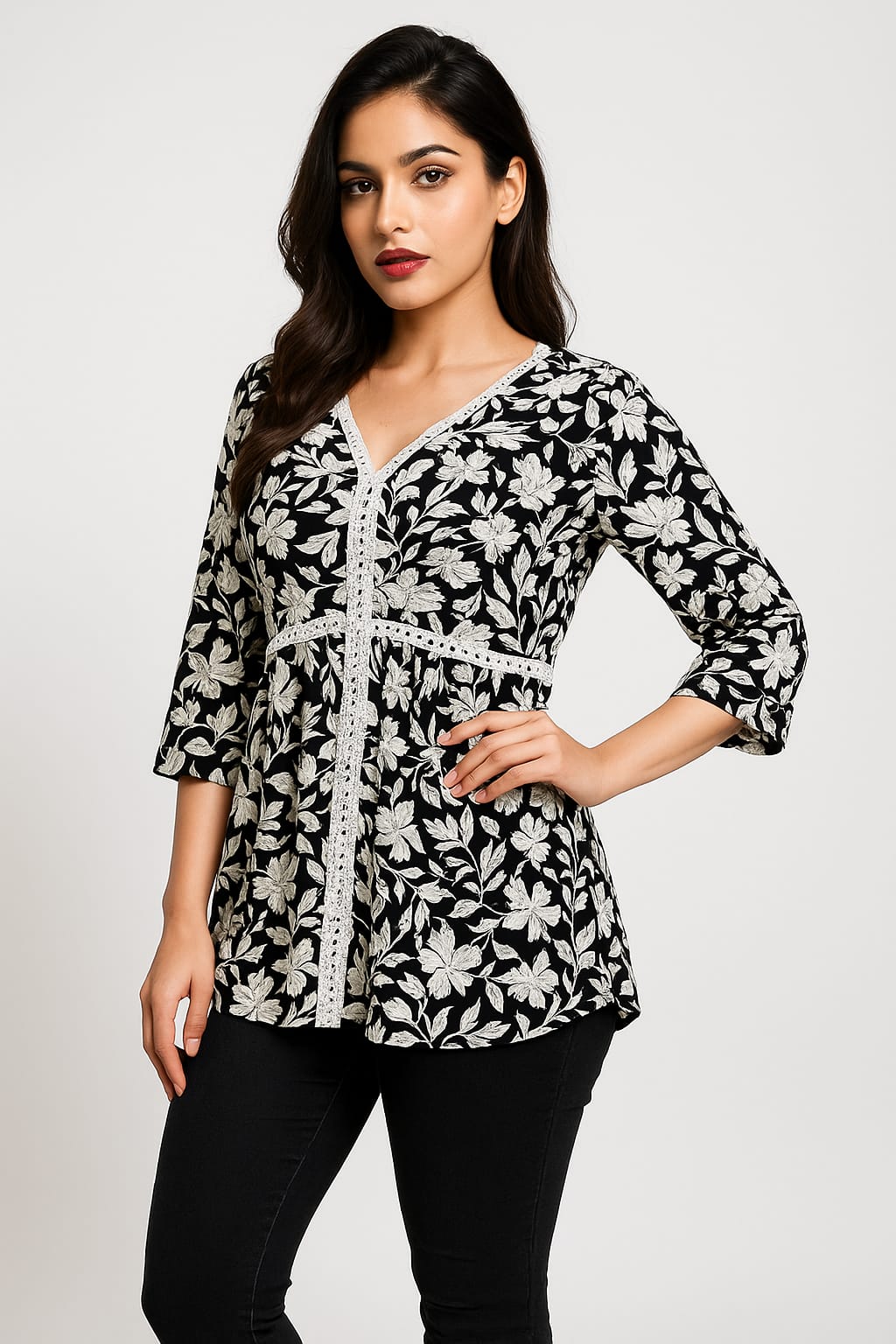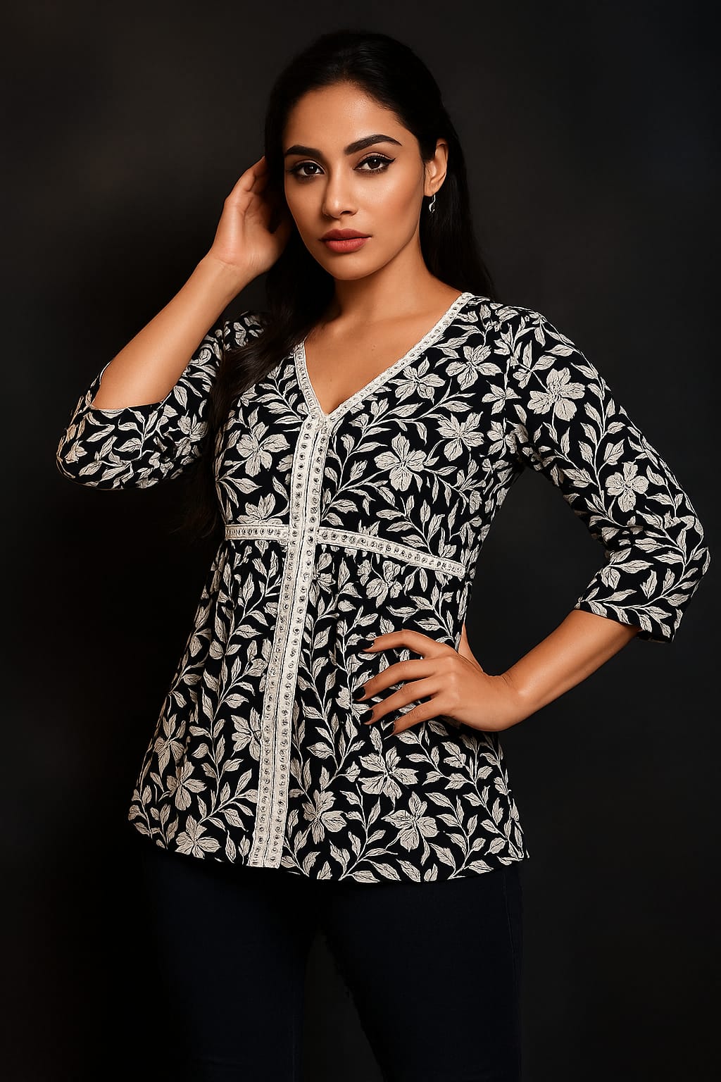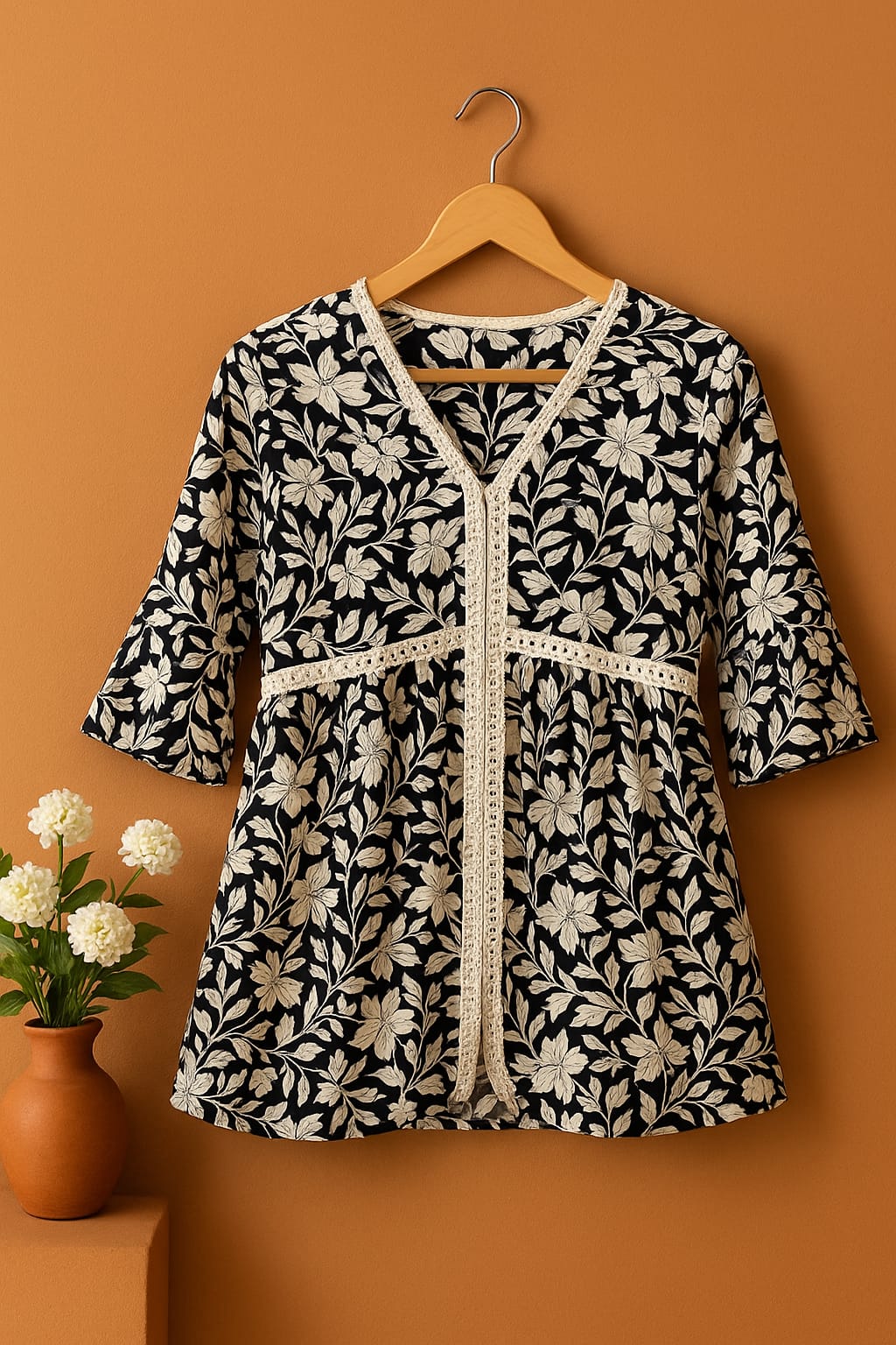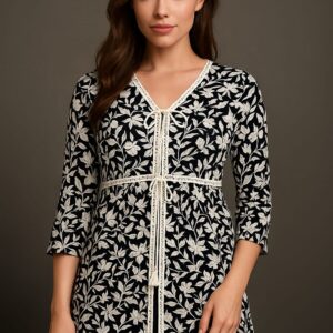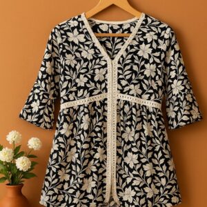 This isn’t just a top—it’s your new style hack. Crafted with luxe cotton blend fabric, detailed ivory floral embroidery, and chic lace trims, it comes with an adjustable lace tie-up that makes it fit beautifully from S to L size. One top, endless ways to slay ✨