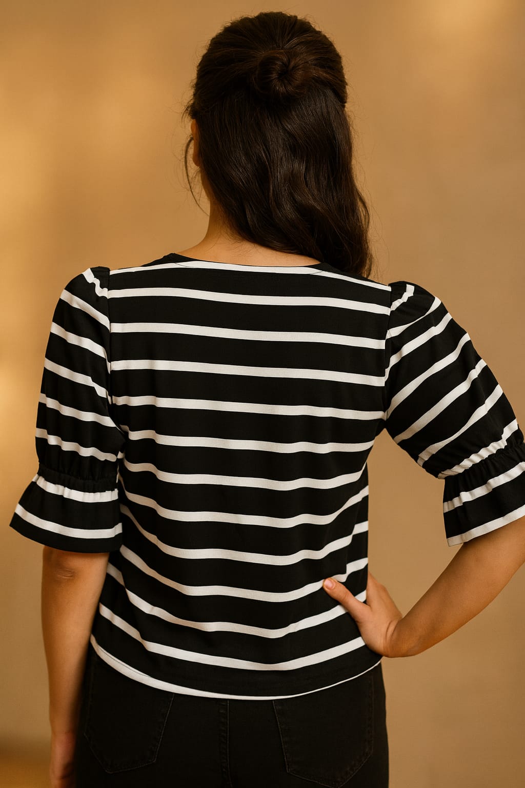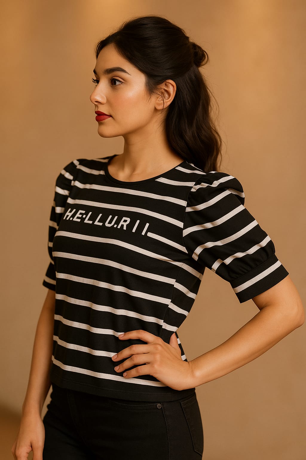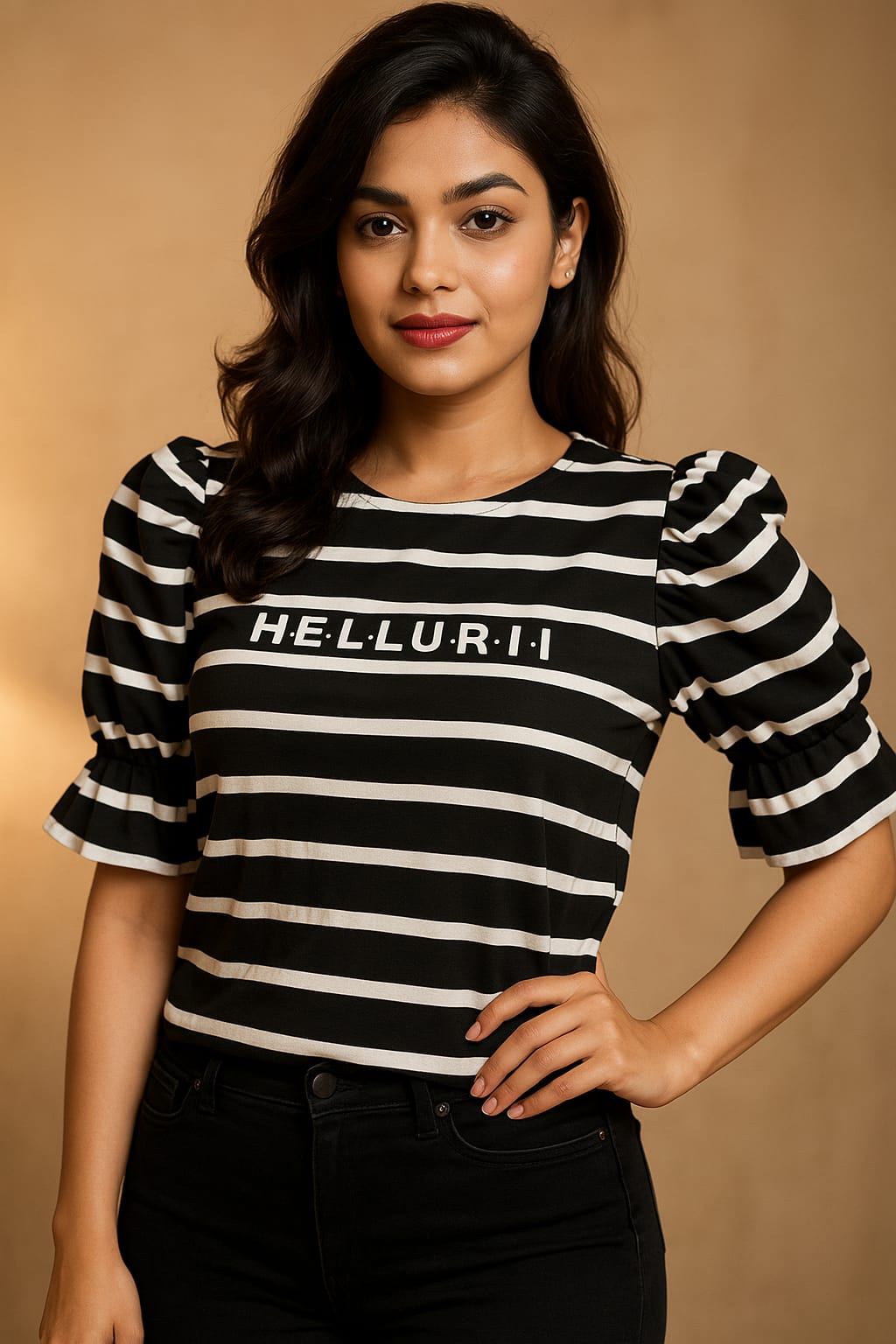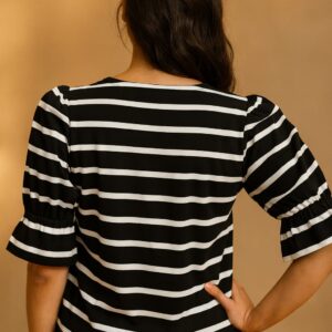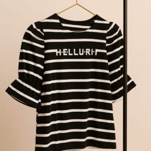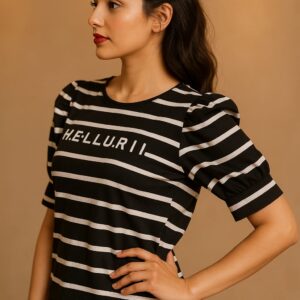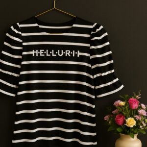 Say hellurr to your new favorite mood-lifter! This black-and-white striped beauty isn’t just a top—it’s a mood, a moment, and a mini-mic drop rolled into one.