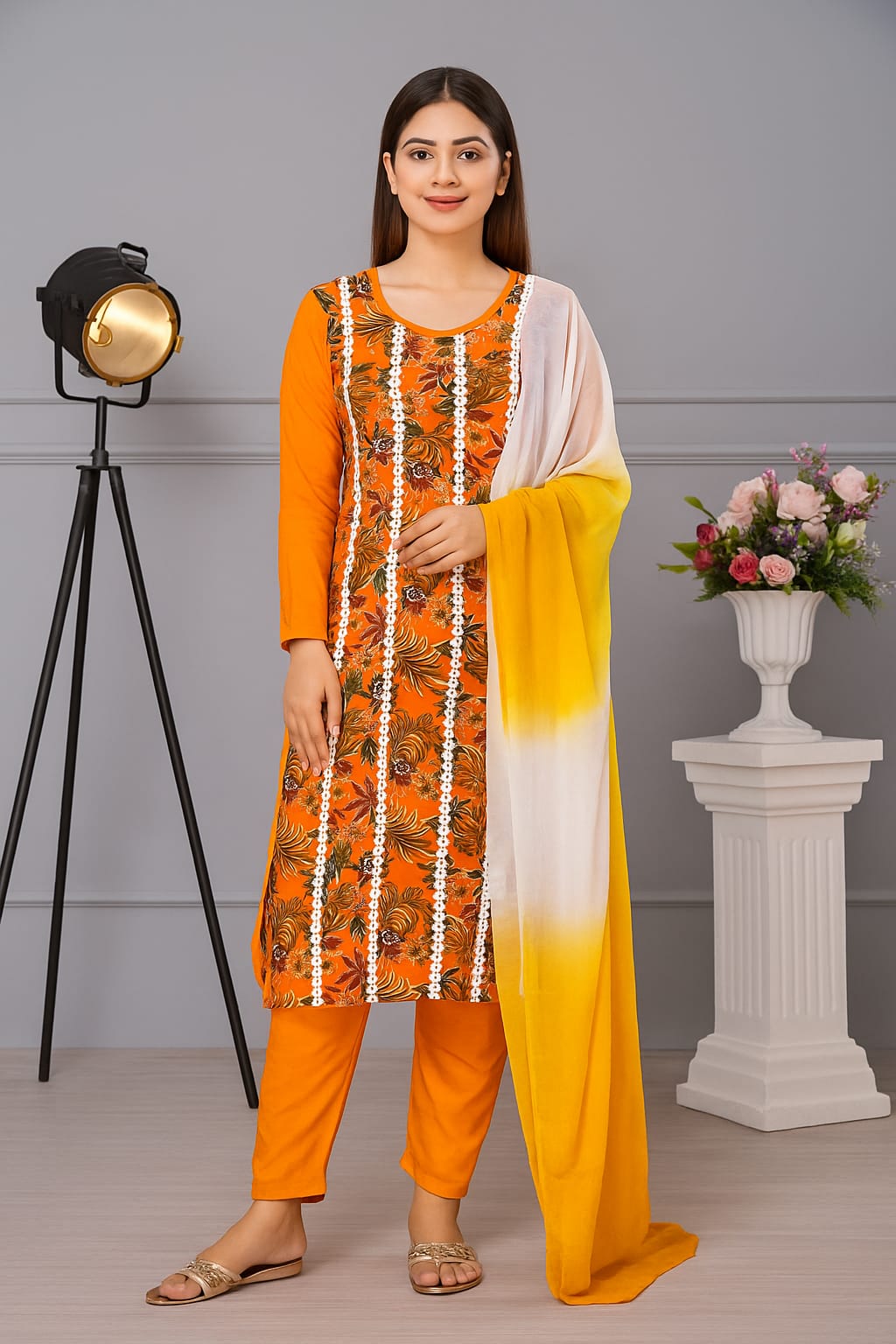 Orange floral is festive ready. Dupatta ka ombre look is so unique 😍.