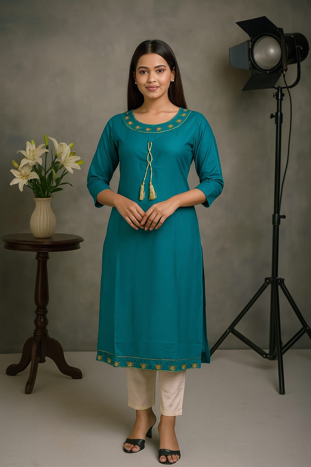 Looking for a kurti that says, “I have great taste” but also whispers, “Don’t test me”? Welcome to CornHubb’s premium tassel-trimmed stunners – where comfort meets couture, and every thread has a personality.
