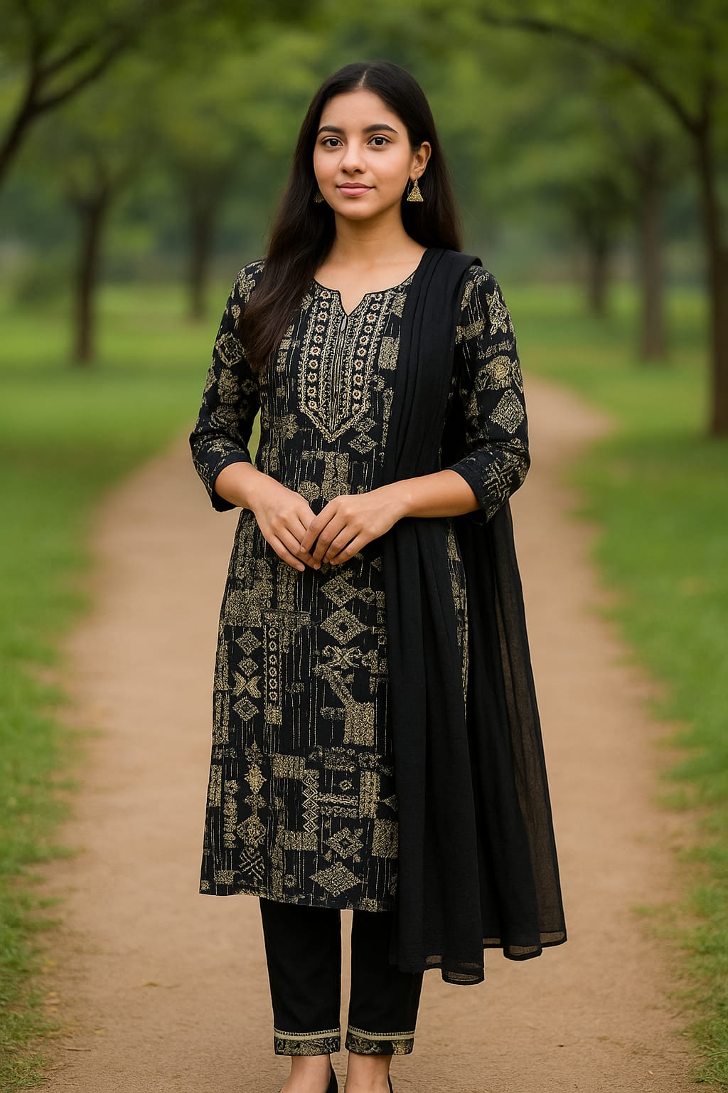 Welcome to the dark side – where fashion is fierce, fits are flattering, and prints slay harder than your mood swings. This isn’t just another black kurta set… this is CornHubb’s Midnight Masala Edition – served hot, without burning your wallet.